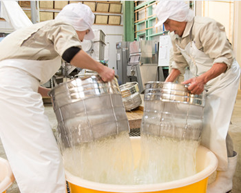 酒造りは生き物を扱う技術。釜場から槽場(ふなば)まで合わせて6つの持ち場があり、すべての場面でマニュアルでは表現しきれない巧妙かつ複雑な技術が必要です。簡単ではないから、若手は熟練の技術を先輩たちから受け継ぐことに真剣に、そして責任感を持って取り組んでいます。