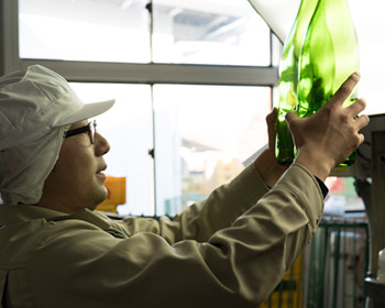 お酒を瓶に詰める前のラインで"洗瓶"を担当しています。最も忙しい11~12月には1日1万本をラインに流して洗い、手があいたときは出来上がった商品を梱包して配達も行います。体力には自信がありますが、寒い中での仕事はやっぱり大変です。それでもこの仕事にやりがいや楽しさを感じるのは、人と触れ合って話をする機会が多いから。